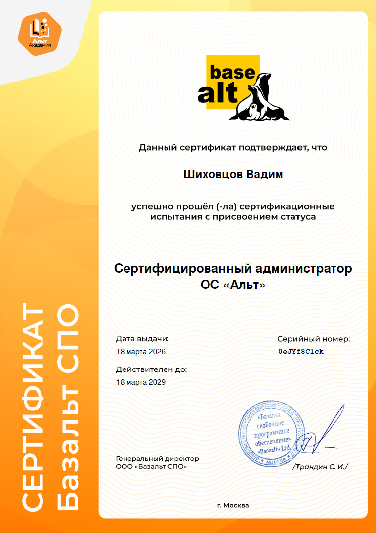 "Пожалуй, лучший из тех, с кем мне удалось обучаться в центре Специалист. Его методика преподавания уникальна. Часто сложные моменты он чередует со всеми нам знакомыми веселыми фразами из мультиков или фильмов. Отдельный плюс за его четкий и громкий голос, который всегда четко слышен в аудитории и в записи. Особенно я в восторге от его голосовалок на уроке – прям находка. Он задает вопрос и записывает варианты ответов слушателей и только потом показывает правильный результат (с его забавными комментариями прям чудо). Очень интересные домашние задания (на ООП была карточная игра). Прекрасно, что на уроках он выдает задание, ждёт пока все попробуют сами и только потом совместно разбирает. Особенно еще здорово, что каждый новый день начинается с разбора домашки. Отдельный поклон за его разработку курсов по Flask и Django. Сложный материал изложен максимально доходчиво. И еще важнейший плюс, что на этих курсах мы работаем на Linux и GIT ибо сейчас без этих технологий бэкэндеру вообще никуда. Еще положительный момент, что он всегда готов задержаться после занятий и ответить на все вопросы. Его занятия я ждал с нетерпением и прям бежал на них. Этот преподаватель подходит для тех, кто готов обучаться и горит желанием научиться. А вот для тех кто пришел отбывать номер и просто прослушать лекции, то он покажется очень строгим и со сложными домашками. Но такие люди значит не готовы освоить профессию бэкендера…как говорится, нечего на зеркало пинять, коли рожа кривая."