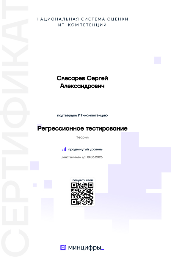Имеет успешный опыт руководства службами тестирования: координировал работу по нескольким направлениям тестирования одновременно, проводил рекрутинг специалистов, стажировал начинающих тестировщиков. Владеет библиотеками JUnit, Selenium Webdriver, Selenide, Allure, программами и системами TestRail, TestIT, Jira, Confluence, HP ALM, LoadRunner, JMeter, IDEA, Postman, SoapUI. ОС: Windows, Linux.
